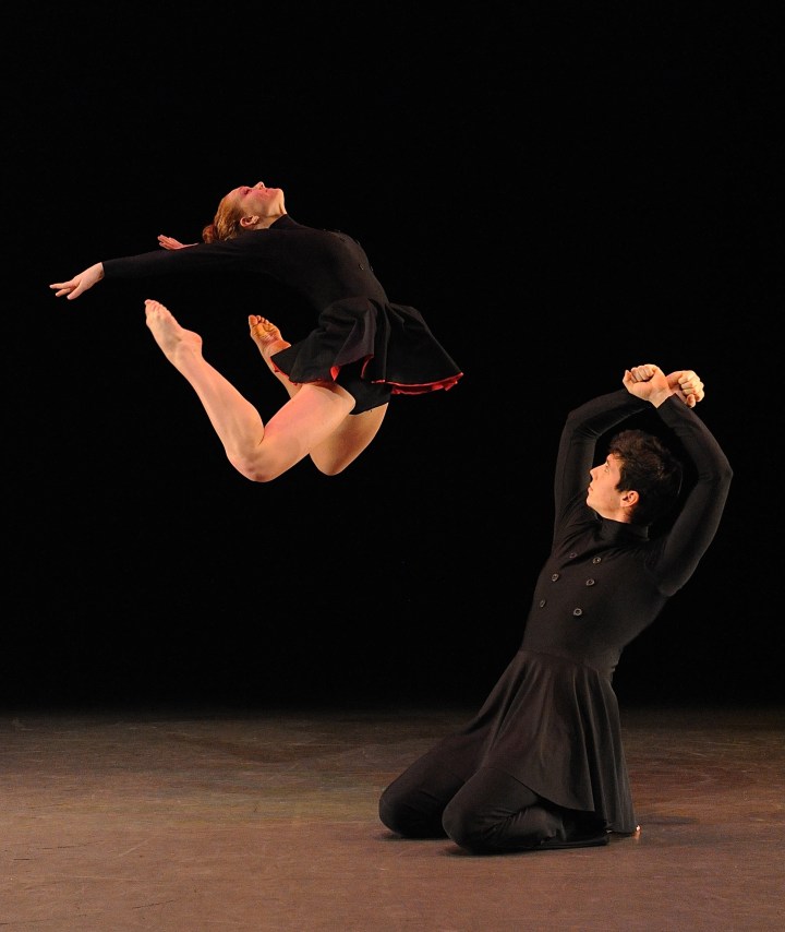 “Delectably bifurcated” describes Jessica Lang’s “La Belle Danse”. One moment, its dancers engaged in pretty, joyous movement, a la a Gerald Arpino ballet; the next, they seemed to be channeling Paul Taylor’s “Esplanade,” with women jumping into their male partners’ arms in seated positions. Both aspects worked tastefully together.
