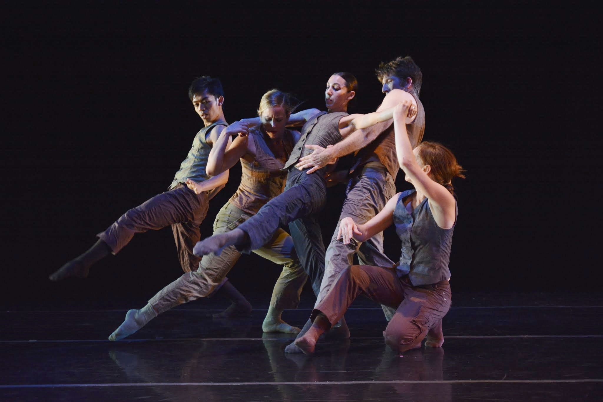 Delivered in a succession of solos, duets, trios and group sections, the work utilized a familiar contemporary movement language seen in many of GroundWorks’ pieces but with a fresh perspective. Like the aforementioned fish, the dancers latched onto each other at times and were carried along in movement phrases that were technically vibrant and visually appealing. Of note were a sharp, angular solo by Bagley that breathed elegance and a solo by Sheaff in which she moved briskly in a semi-crouched position a la a martial arts kata. It was the work’s final duet danced by Bagley and Highfield however that really stood apart (and quite frankly could have stood on its own).