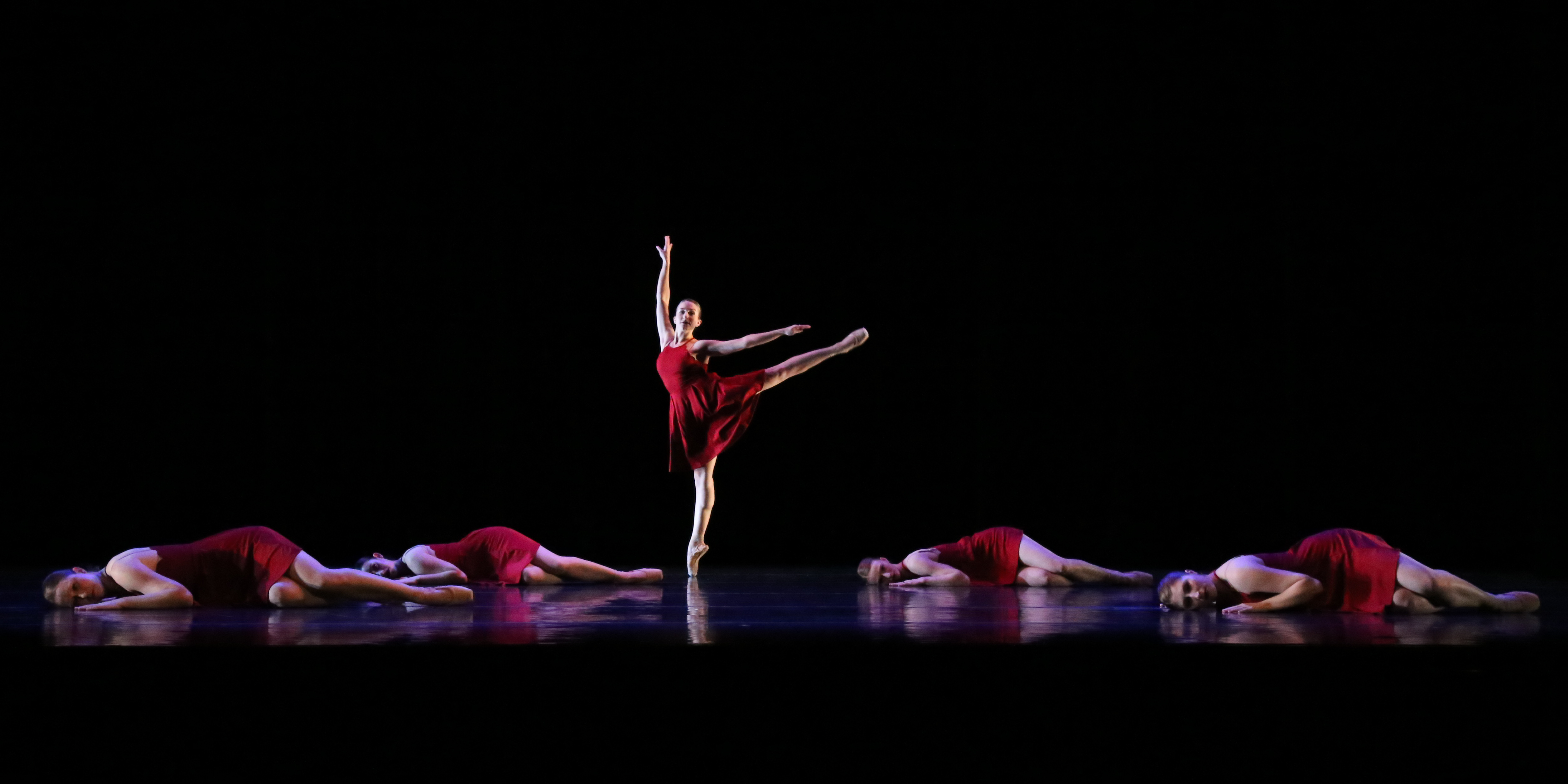 The program kicked off with Amanda Fisher’s re-envisioned “Pizzicato” (2018), a 7-minute work danced to upbeat music by The Piano Guys featuring eight of Bodiography Contemporary Ballet’s dancers in crimson dresses. A reaction to the mood of the music, Fisher’s choreography, while resembling stylized ballet classroom exercises, was slightly seductive and aesthetically pleasing. Highlighting the piece, and Multiplicity overall, was standout dancer Nicole Jamison who has fast become a star for the company.