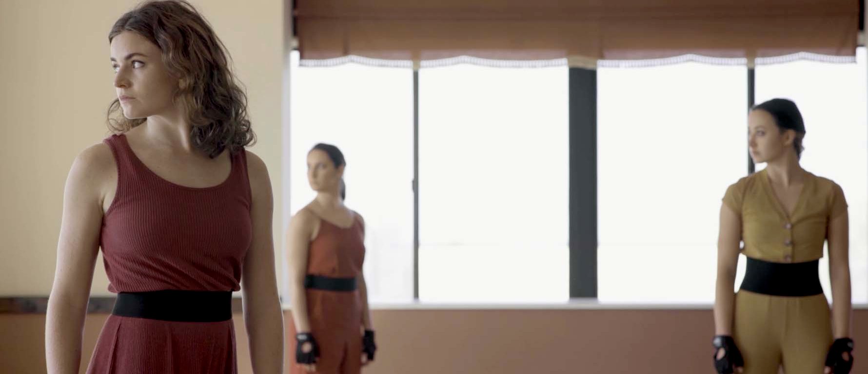 Switching locations to a room in the building that looked like a padded cell, the mood of the music and the work momentarily began to lighten up. Morgan then begins the first of several monologues by the dancers quietly spoken into the camera. Hers is a fantasy about moving to Amsterdam, switching careers, and going off the grid as if in a witness protection program.