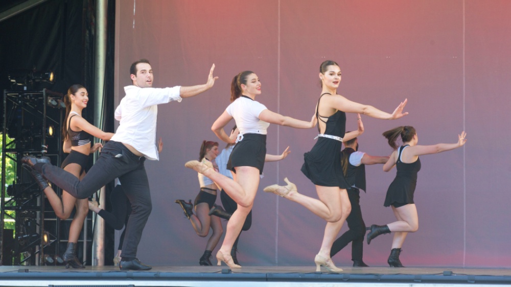 Concluding the showcase was Broadway veterans and Point Park dance faculty members Danny Herman and Rocker Verastique’s jazz dance spectacle “Benny”. In it, fifteen beaming and energetic dancers ripped through Herman and Verastique’s choreography to Benny Goodman music filled with the usual Broadway jazz tropes, Fosse arms, jazz hands, head rolls, shuffles, and finger snapping. Basking in the work’s delightful cliché, the audience ate up the production number and rewarded it, and Parsakian’s Open Air Artist Showcase, with enthusiastic applause.