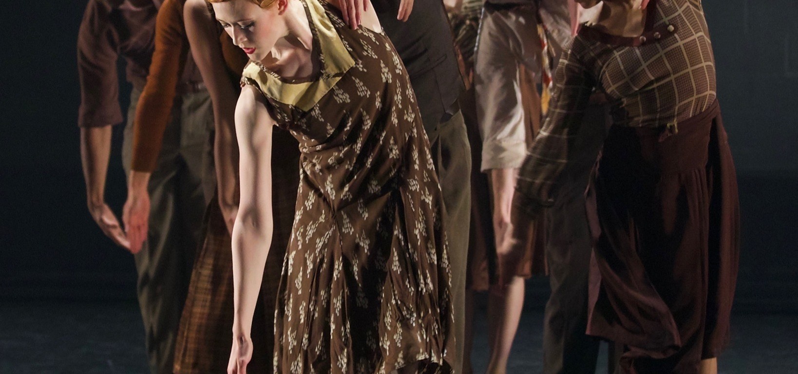 Performed to music by composer Philip Glass, Hougland’s choreography for the contemporary ballet’s 14 dancers was dense with hand and arm gestures, some crisscrossing the dancers’ bodies, along with unison group dances that built drama and tension.