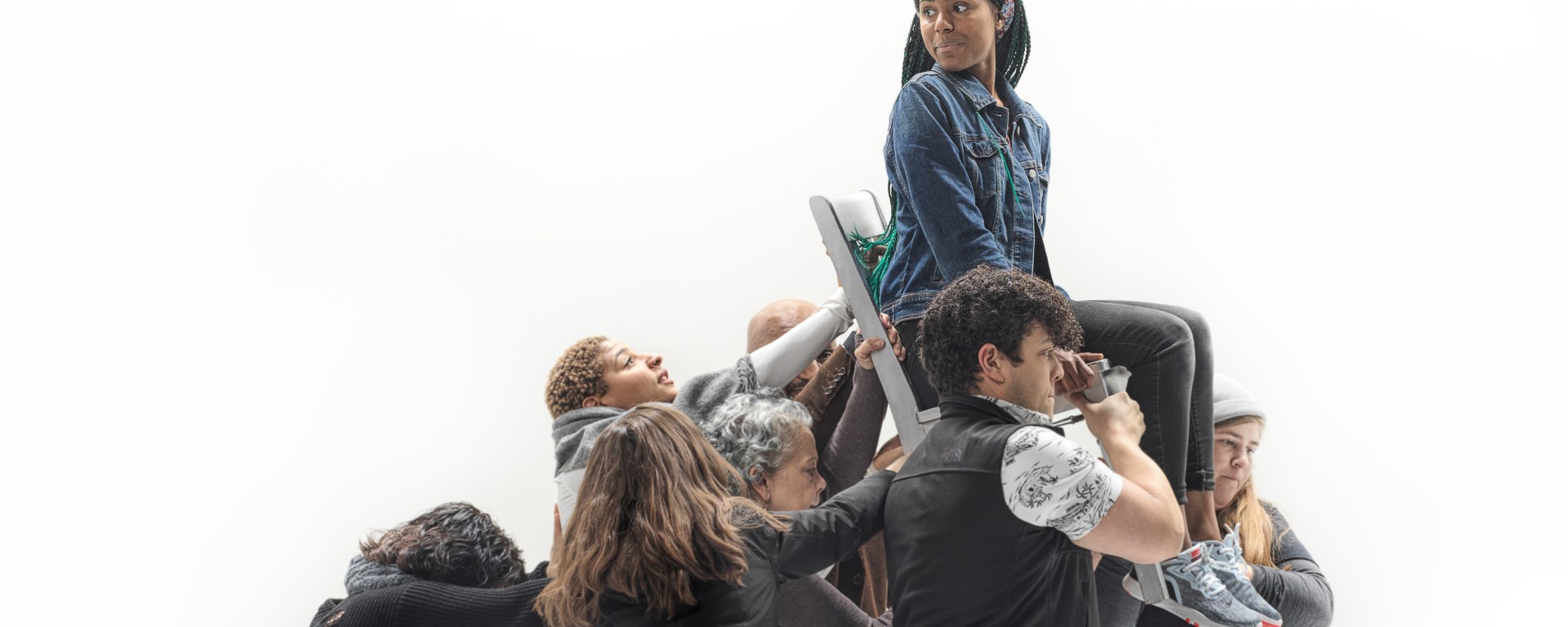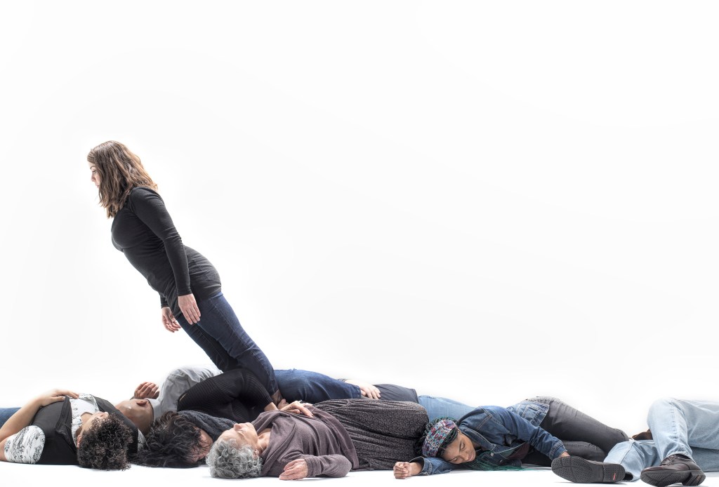 With concept, staging and choreography by CorningWorks Artistic Director Beth Corning, the first two-thirds of The Tipping Point was modeled after Doctors Without Borders/ Médecins Sans Frontières’ exhibition FORCED FROM HOME. Corning adapted the exhibition to be the aftereffects of a refugee crisis in the United States in which The Tipping Point’s cast of nineteen portrayed aid workers, smugglers, fellow refugees, and more. The cast was made up of Pittsburgh area actors and dancers including Corning, The Pillow Project’s Pearlann Porter, and slowdanger’s Taylor Knight, along with five members of Pittsburgh’s Osso family, Kurdish refugees from Syria. Rigidly, staying in character throughout the work, the cast reinforced the drama of the audience’s refugee experience.