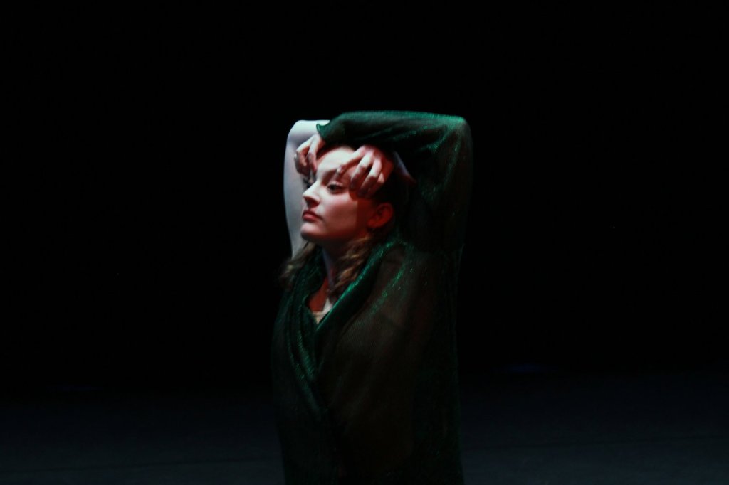 Karam’s five-minute contemporary dance solo mixes elements of dance theater and is performed to “Piel” by Venezuelan musician Arca. The song, sung in Spanish, is driven by a haunting dissonance of piercing chords and deep-sounding bass that heavily inspired Karam’s creative process. It invited inward reflection and unveiled the weight that tumultuous experiences can carry.