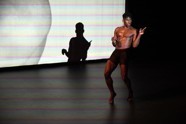 Seated center stage in spotlight, Knight delivered a monologue of his daily routine to illustrate the rigors of a professional dance career: “Wake up, meditate, stretch, eat breakfast, seven hours of rehearsal, a 30-minute lunch break to try to stay current on social media, dinner, cross-train, go to bed, repeat, repeat, repeat.”