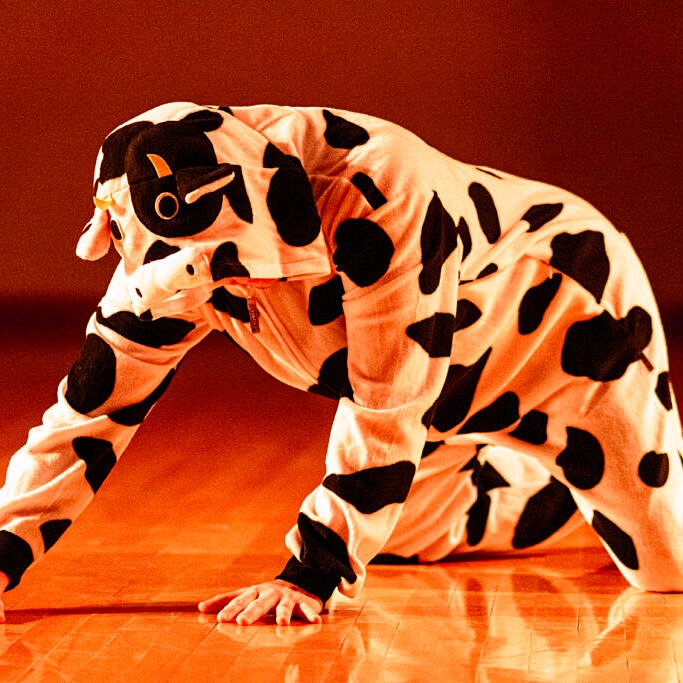 Jacob Henss & Betsy Brandt’s experimental dance-theatre piece that explores the dairy cow as a symbol of exploitation and femininity. Through surreal movement, burlesque, and ritual, it challenges how we consume bodies and meaning.