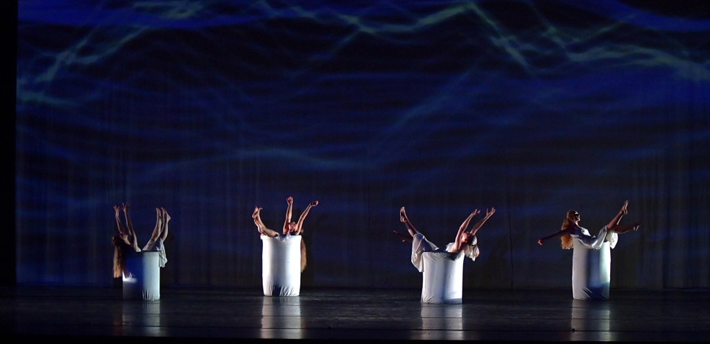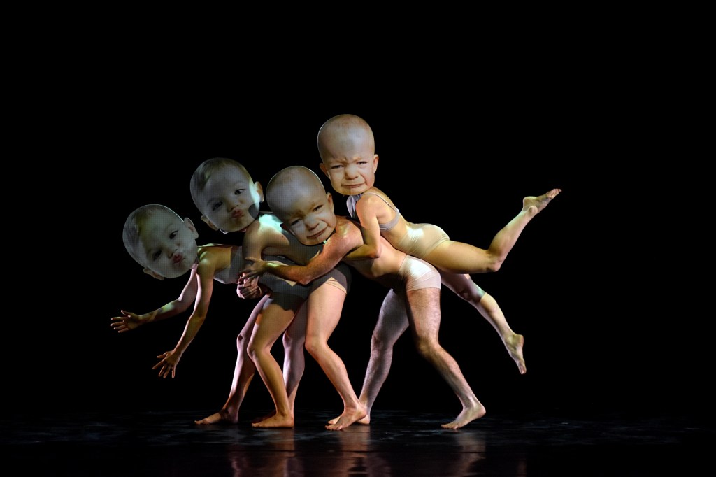Humor followed in “The Tweedles” as four dancers donned giant Gerber baby-like masks and fancifully moved about the stage to the delight of the audience.