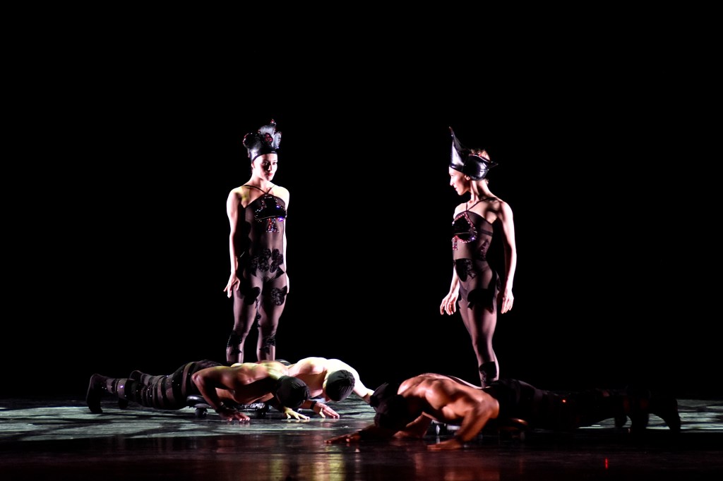 A lobster quadrille, images of seemingly bodiless mad hatters, a battle between the Queens of Clubs and Spades, followed, before act one ended with “Cracked Mirrors,” where specially angled mirrors were used to create the illusion of performers dancing with and partnering themselves.