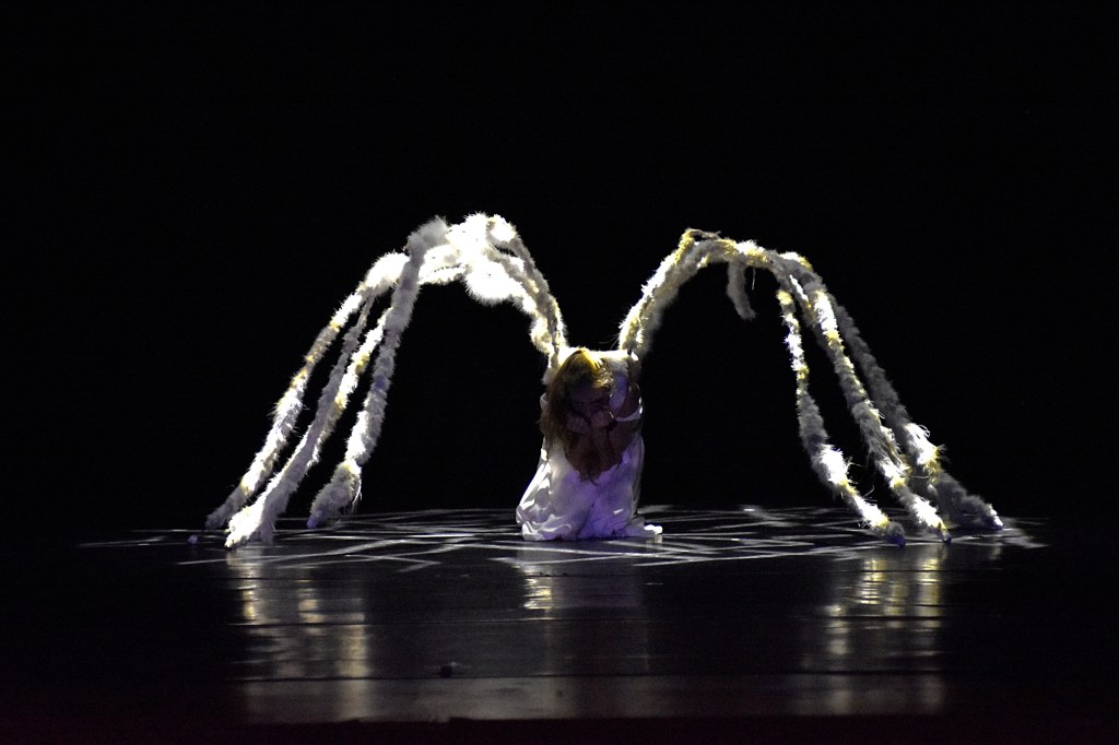 Act two continued with the bizarre and beautiful, including a scene in a jungle forest, one of the Alice’s being transformed into a giant spider, a scene within a church with stained glass windows, apparitions, and the vibe of an Exorcist film.