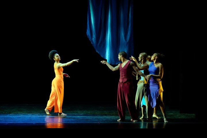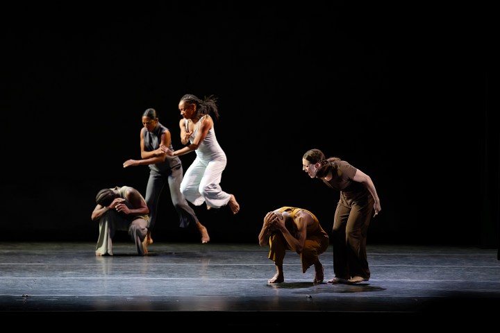 “Scream,” the work’s darkest section, delved into themes of slavery and oppression. In it, four of the company dancers let out rage-filled screams and moved through choreography that had them dashing about the stage in fear and defiance. Most gripping was a repeated sequence in which the dancers, one by one, sprinted across the stage, only to be halted and pushed back by an unseen force until they capitulated.