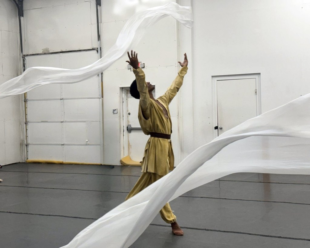Messiah’s other key roles include two principal couples, four female soloists, including longtime company member Lauren Stenroos, in her final performances (read my article on Stenroos and her career here), and The Archangel, a multifaceted role involving several dancers including one as the angel, another who lifts them about, and four more who manipulate each of the angel’s six foot long wings.