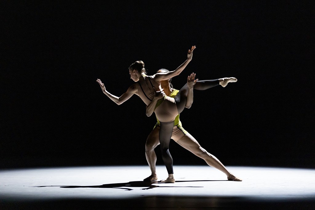 Embracing the ominous mood of Whitley’s impressively dramatic music, the dancers darted on, off, and about the stage in energetic and panicked movement phrases.